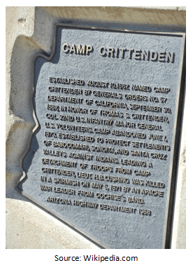 Private Games fought further away from home. He was initially enlisted with the 32nd Regiment of Regulars, which was consolidated later with the 21st Regiment. His infantry fought in the Indian Wars in the Southwestern territories. He was stationed at Camp Crittenden in Arizona and injured by the end of his service. Camp Crittenden was a U.S. Army post established on August 10, 1867, at the head of Davidson Canyon, three miles west of present-day Sonoita, Arizona. The fort was named for Colonel Thomas L. Crittenden, who commanded the 32nd Infantry at the battles of Shiloh, Stone River, and Chickamauga during the Civil War. The fort saw much action during the Apache Wars, heaviest between 1870-1871. The camp was finally closed on June 1, 1873.