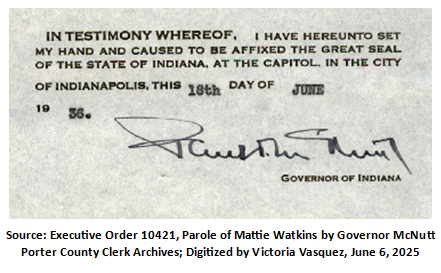 But Mattie served only one year of her sentence when a twist of fate occurred. She had no previous record and her record at the women’s institution was in good-standing. Her situation was about to change with Executive Order No. 10421, which read: